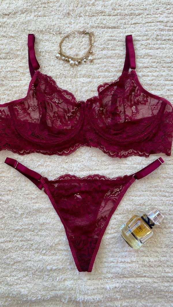 Confeccionado en puntilla elastizada color bordo, con breteles regulables y arco.
