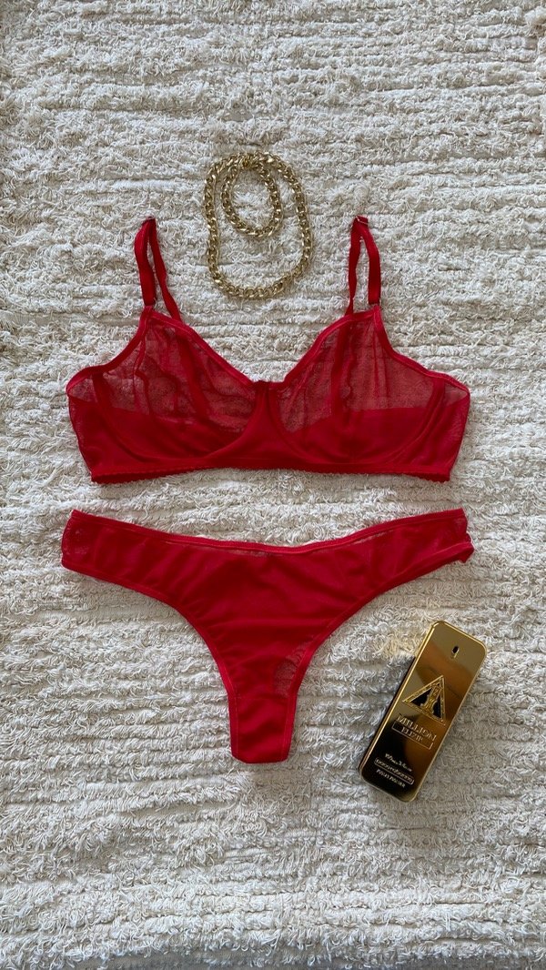 Confeccionado en microtul elastizado rojo con breteles regulables y arco.